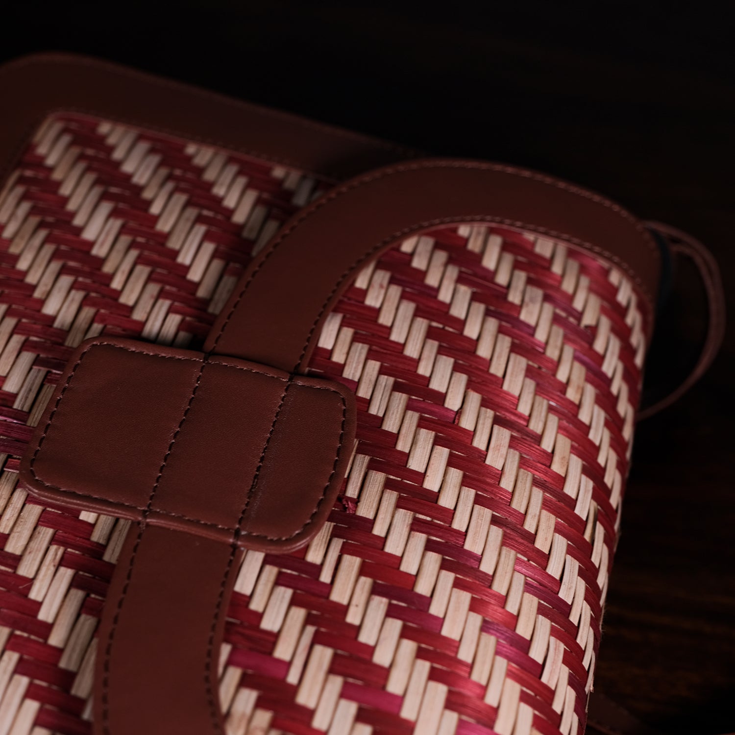 Elevate your everyday style with our latest Sling Bag in red & biege—where elegance meets craftsmanship. Designed with a distinctive woven pattern, this bag seamlessly blends natural fibres into an eye-catching zigzag texture. Rich brown leather accents complement the design, offering a touch of sophistication and unmatched durability.