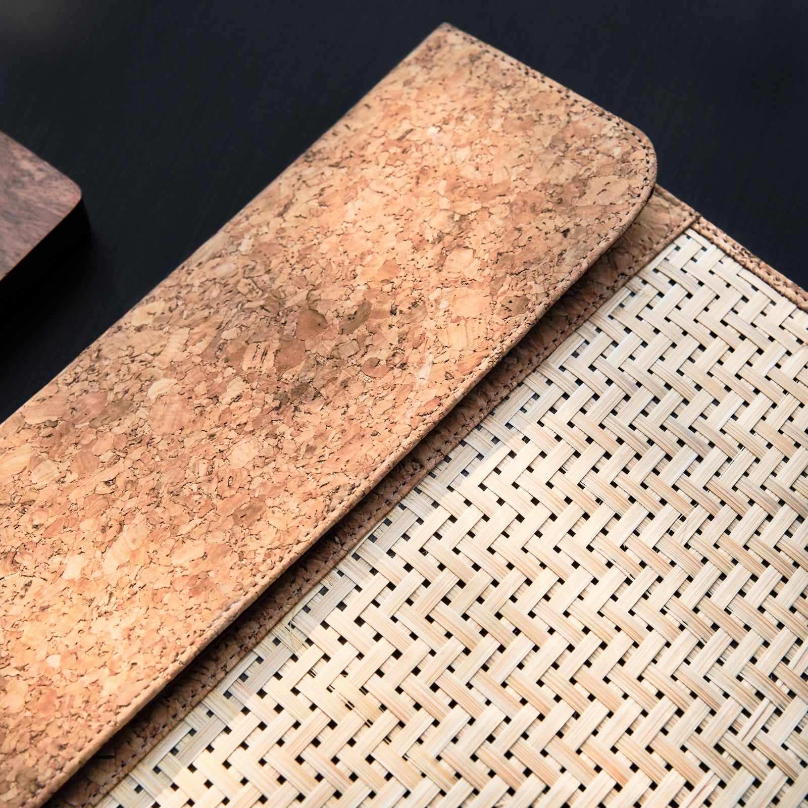 - Made with bamboo and cork.
