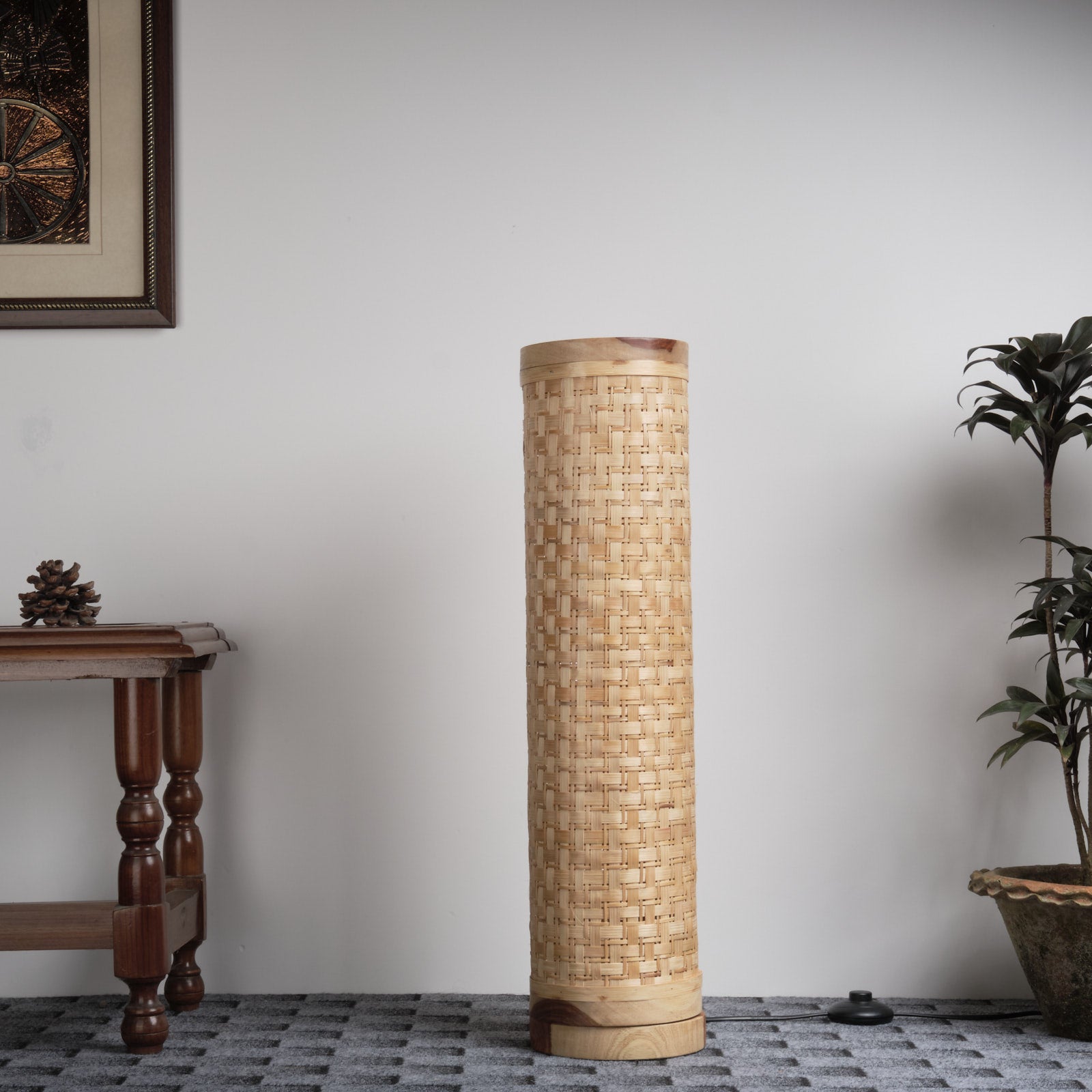 The natural bamboo texture and soft glow create a serene atmosphere, perfect for cozy nooks or living rooms.